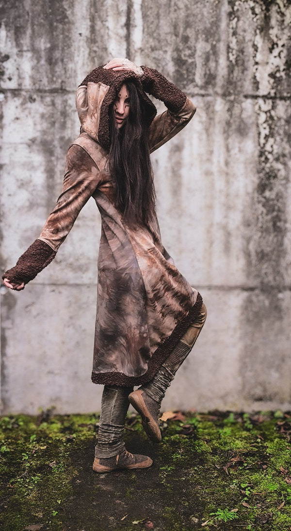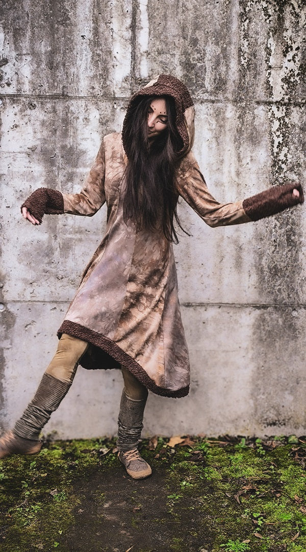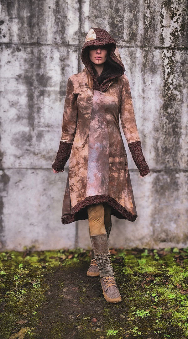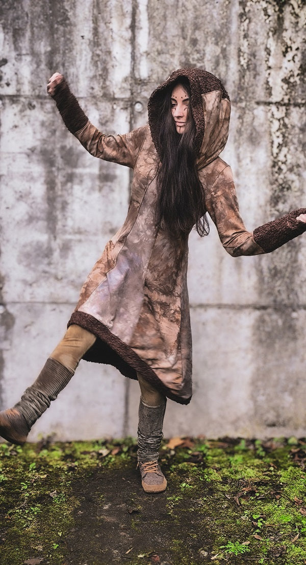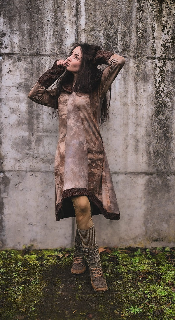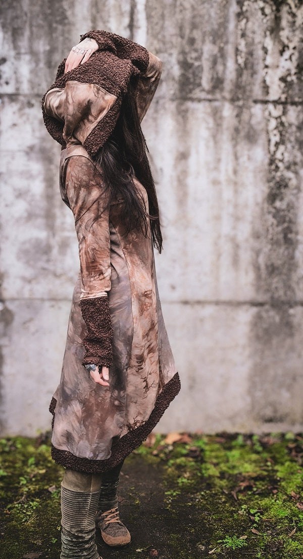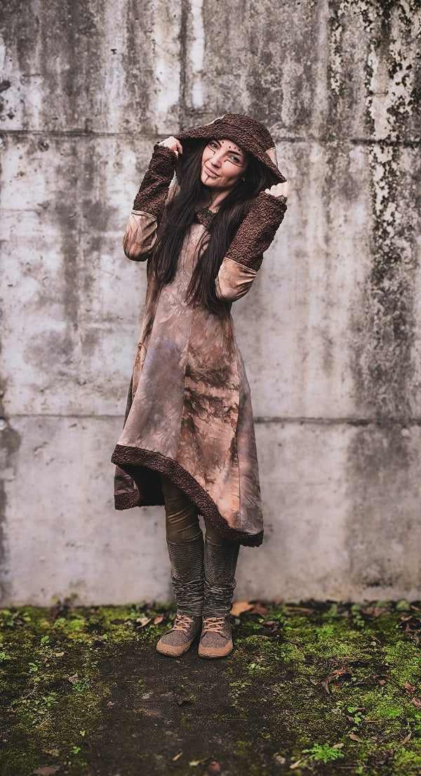 • Handgefärbt in Rotbraun- und Graubrauntönen, Teddystoff in sattem Schokobraun