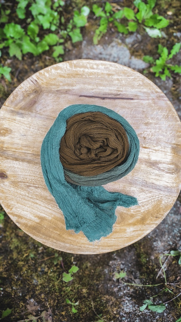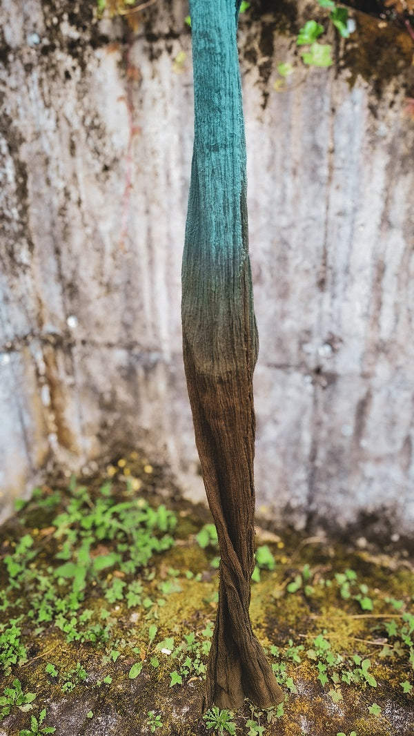 • Handgefärbt in verschiedenen Gelbbrauntönen-, und Türkisblau,- Petroltöne (Jedes Stück variiert in Farbintensität, Verlauf und Helligkeit. Manche sind Gelbbrauner oder Blauer als andere)