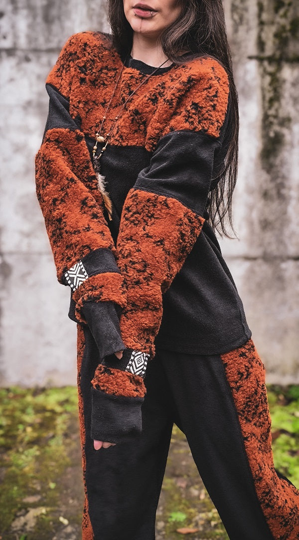 • Schönes tiefes Basic Schwarz mit Kaminroter Wolle mit Barockprint